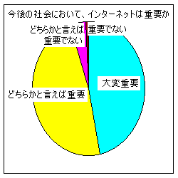 (1)あなたは、今後の社会において、インターネットは重要だと思いますか。 @大変重要 Aどちらかと言えば重要 Bどちらかと言えば重要でない C重要でない | |