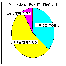 (10)各地域の文化的行事を動画・画像として記録することに対して、どう思いますか。 @非常に意味がある Aまあまあ意味がある Bあまり意味がない Cほとんど意味がない | |