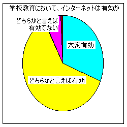 (2)あなたは、学校教育全般において、インターネットは有効だと思いますか。 @大変有効 Aどちらかと言えば有効 Bどちらかと言えば有効でない C有効でない | |