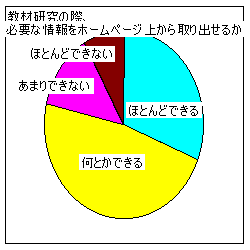 (5)あなたは、教材研究の際のインターネット活用において、必要な情報をホームページ上から取り出すことはできますか。 @ほとんどできる A何とかできる Bあまりできない Cほとんどできない | |